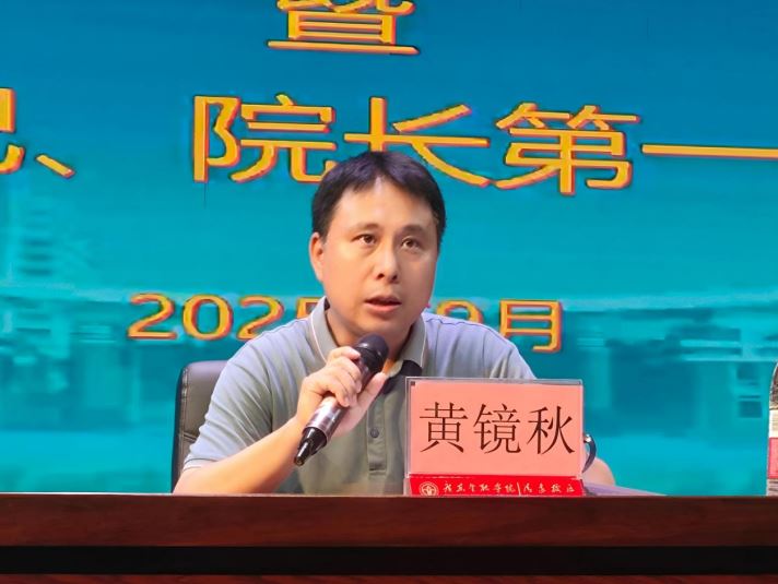 金融与投资学院党委副书记黄镜秋代表全院师生热烈欢迎2025级新生加入广东金融学院这个大家庭。他以新时代青年在建设“金融强国”中的使命担当为主题,向新生提出三点希望:其一,赓续历史血脉,厚植家国情怀,将个人理想融入国家发展大局,坚定理想信念;其二,永葆求知热情,以勤学为径,在全面发展中积蓄成长势能,在实践锻炼中塑造品格、提升综合能力;其三,争做向阳而生的“生活家”,以丰盈灵魂涵养青春气象,在锤炼品格、滋养心灵中成长为可堪大用、能担重任的栋梁之才。他还鼓励新生志存高远、追求卓越,以“助力金融事业发展”为己任,把握行业机遇,扛起时代使命。