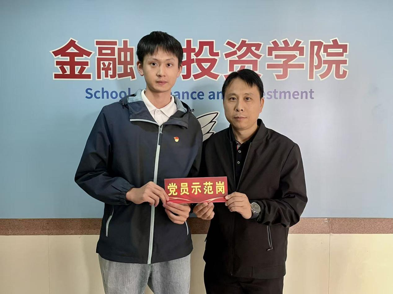 为切实强化学生党员的责任感与使命感,充分发挥其在广大学生中的示范引领作用,金融与投资学院于2025年11月25日组织开展了学生党员示范岗挂牌活动,由学院党委副书记黄镜秋为达标党员宿舍授牌。