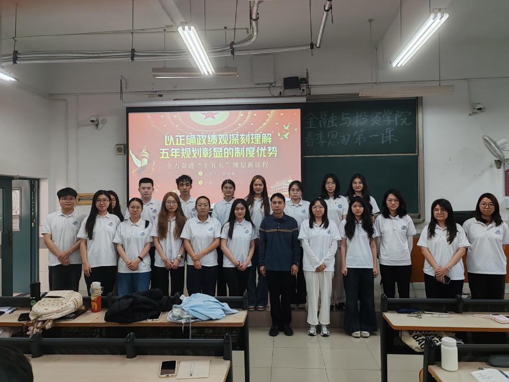 为深入学习贯彻全国两会精神和推动落实正确政绩观学习教育,落实立德树人根本任务,引导广大青年学生胸怀“国之大者”,在“十五五”规划开局之年中坚定理想信念、厚植家国情怀,3月17日,金融与投资学院在北教C栋301课室面向学生党员举行2026年春季学期书记、院长“思政第一课”。