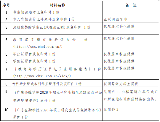 复试考生须于4月8日前(含本日)依下表提交相关材料完成资格审核。
